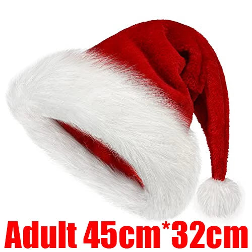 Die rote Santa Claus Weihnachtsmann Mütze hat einen breiten weißen Plüsch-Rand & einen weißen Bommel. Das Nikolaus Kostüm-Accessoires passt auf jeden durchschnittlichen Kopf eines Erwachsenen und hält deine Ohren beim Weihnachtsmarkt wunderbar warm..